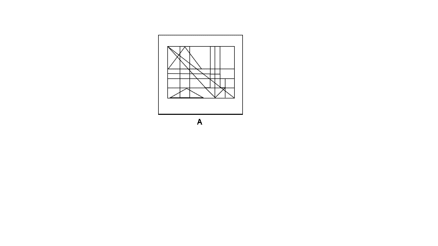 - Two of the smaller shapes are identical and located diagonally to one another: